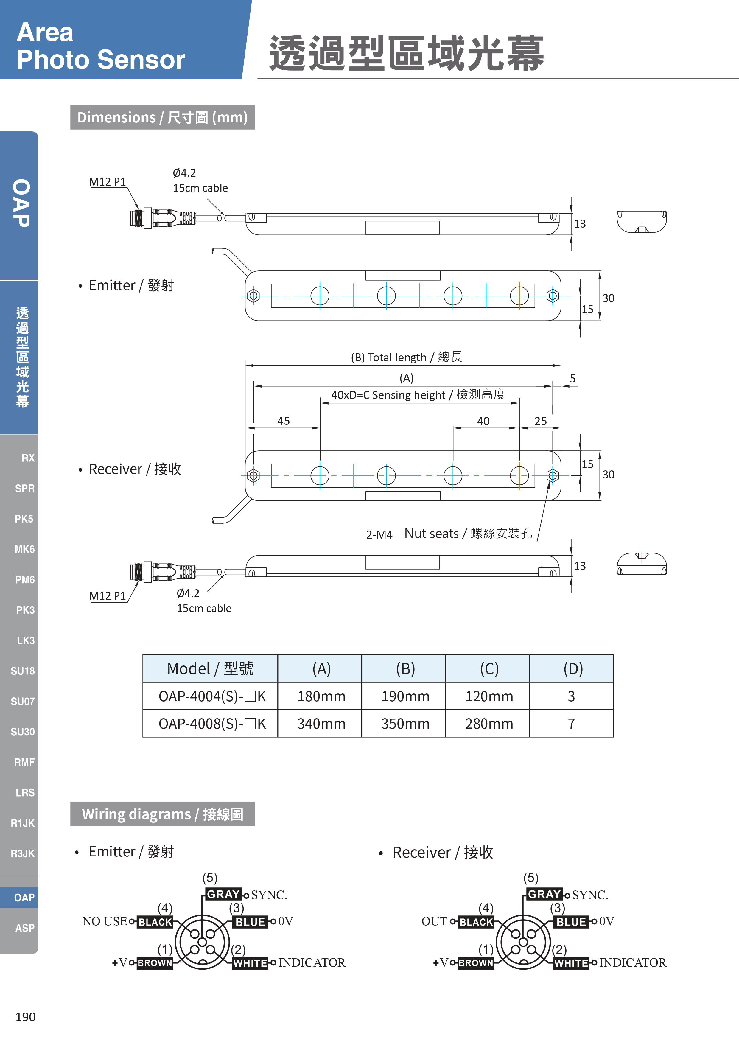 | 選項 | Mounting Bracket : OAP-M008 / Connectors: M125R-PVC-2M / M125R-PVC-5M |