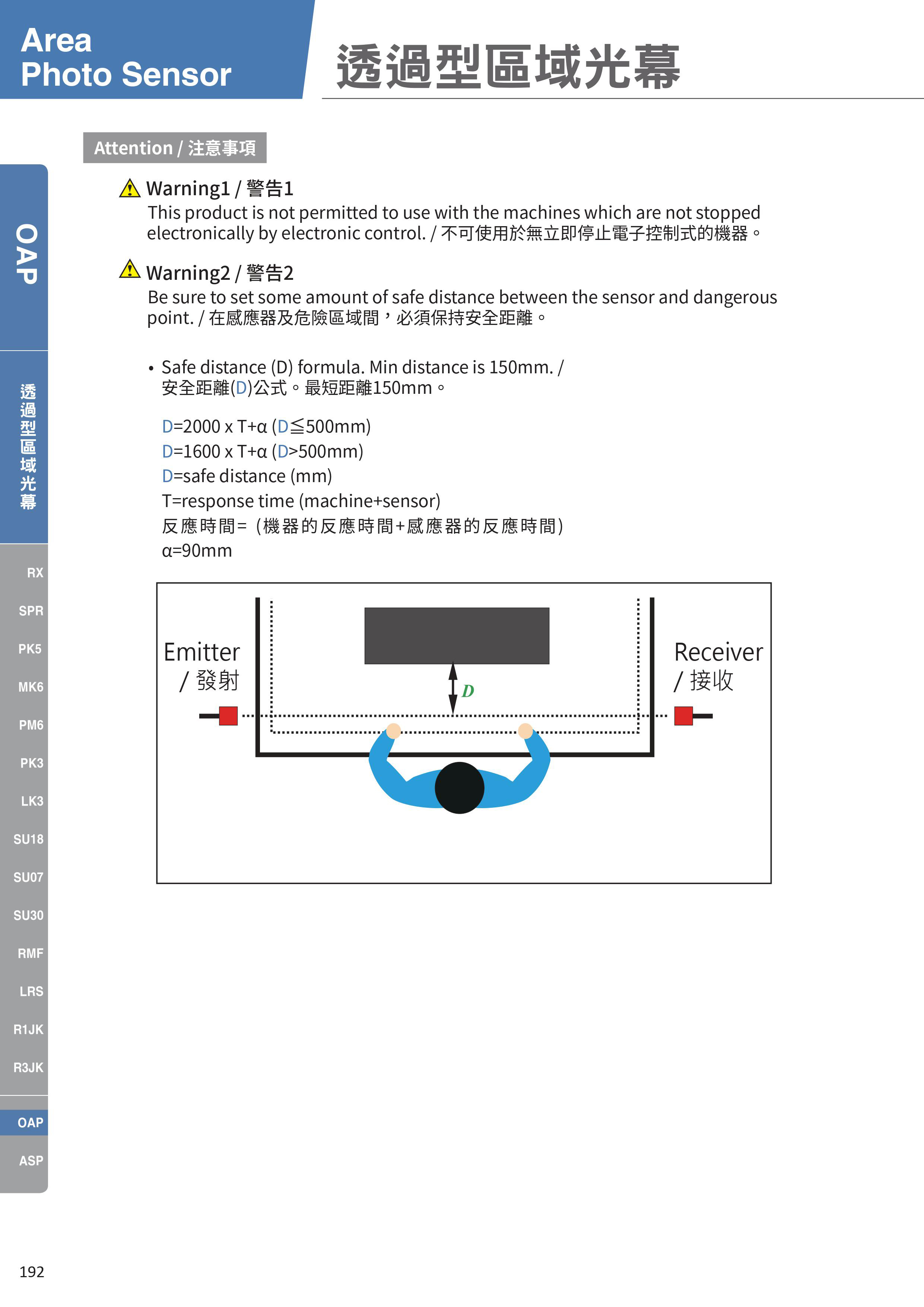 | 指示燈 | 在正常通電情況下,LED燈在發(fā)射端光軸被阻隔時,紅+綠燈會全亮。 如果恢復(fù)正常,即發(fā)射端光軸不被阻隔,LED亮綠燈。 |