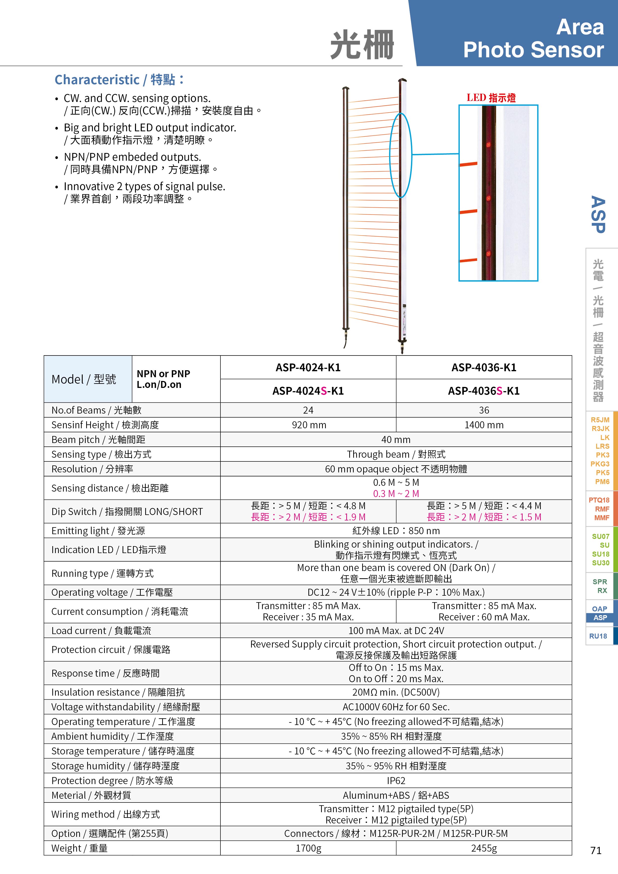 | Sensing distance | Through beam / 對照式 |