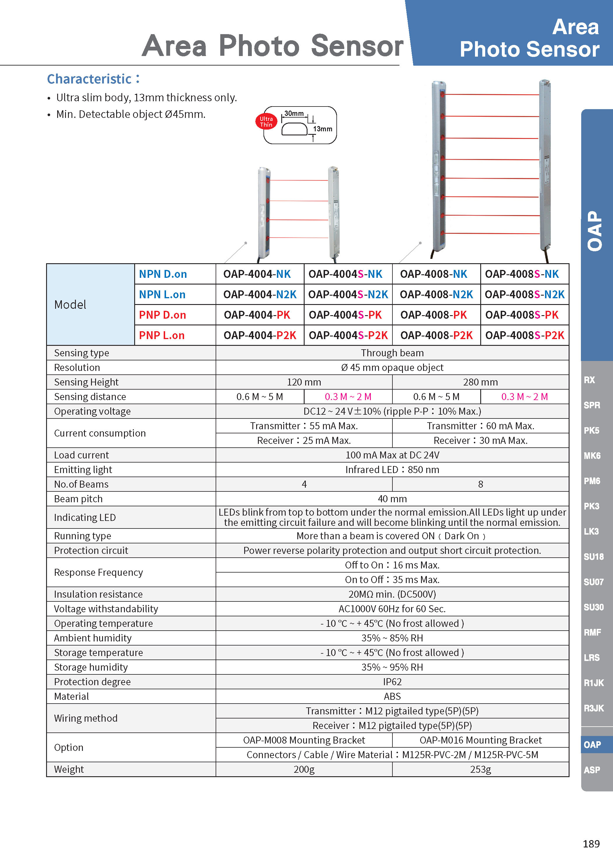| Option | Mounting Bracket : OAP-M008 / Connectors: M125R-PVC-2M / M125R-PVC-5M |