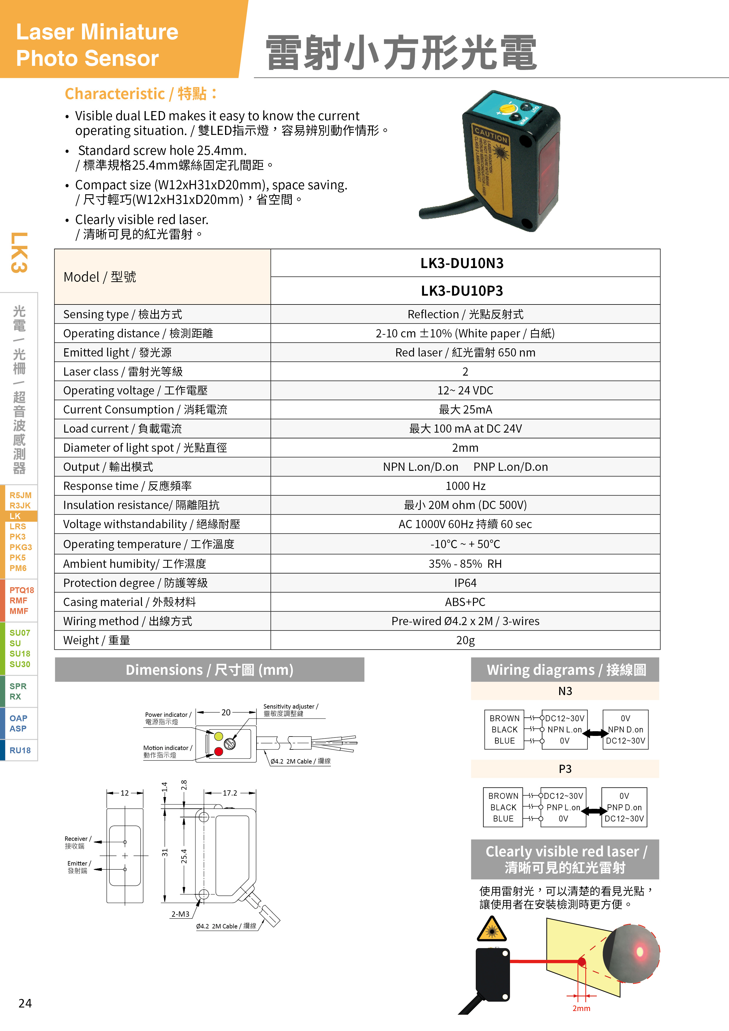 | 配線方法 | Pre-wired ?4.2 x 2M / 3-wires |