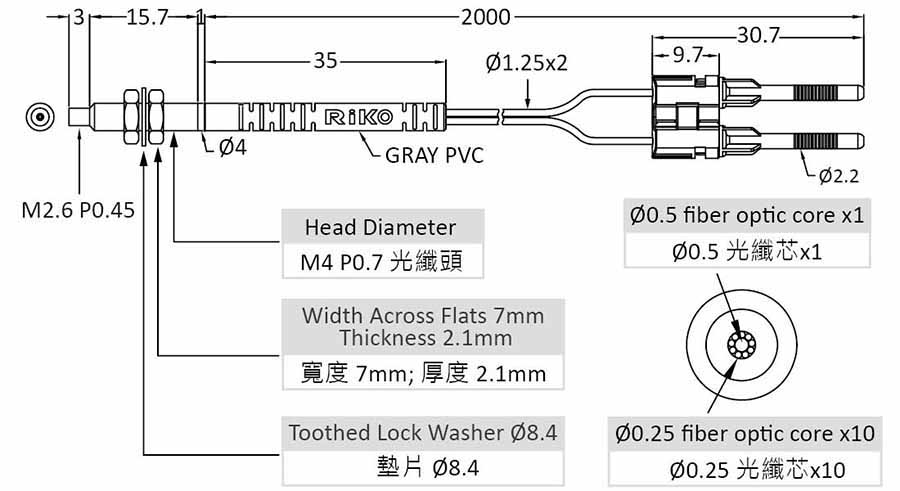 反射型 M4 耐彎抗拉光纖