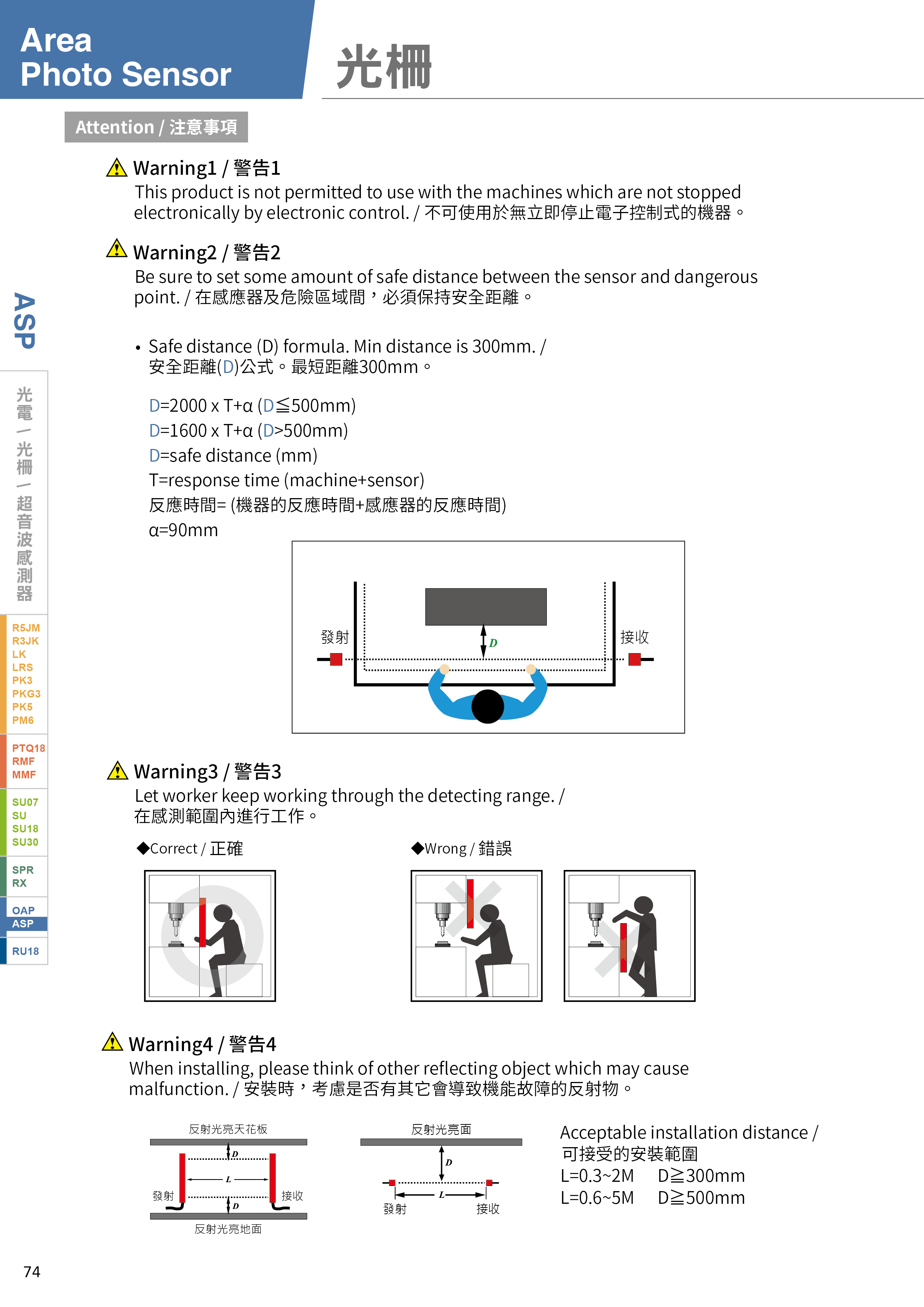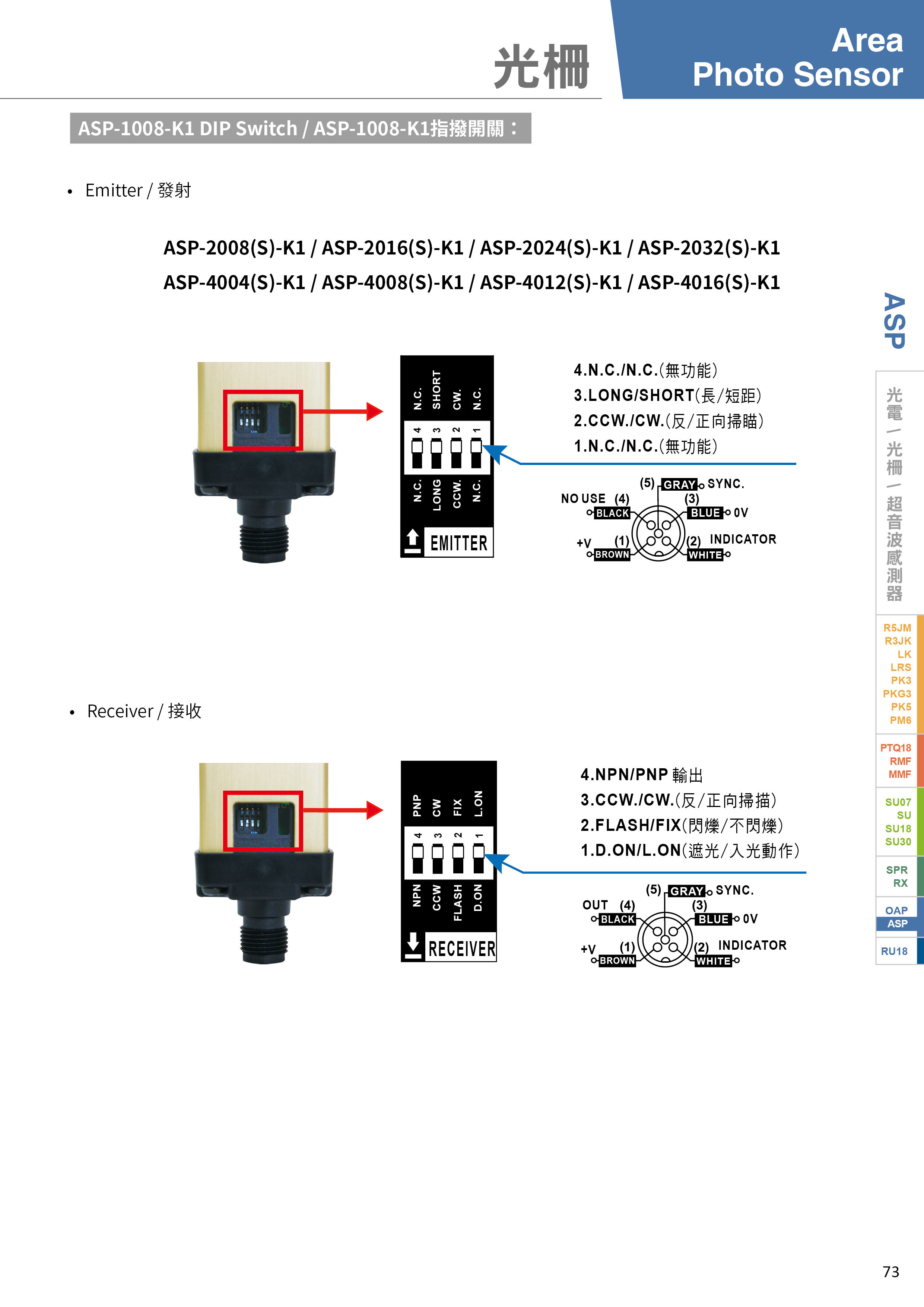 | 二極開關(guān) / 長 / 短 | 長距:≧ 5 M / 短距:≦ 4.4 M |