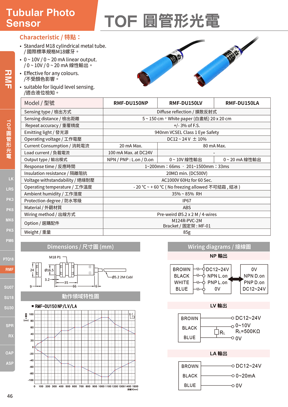 | 檢出距離 | 5~150cm , 白畫紙 20x20cm |